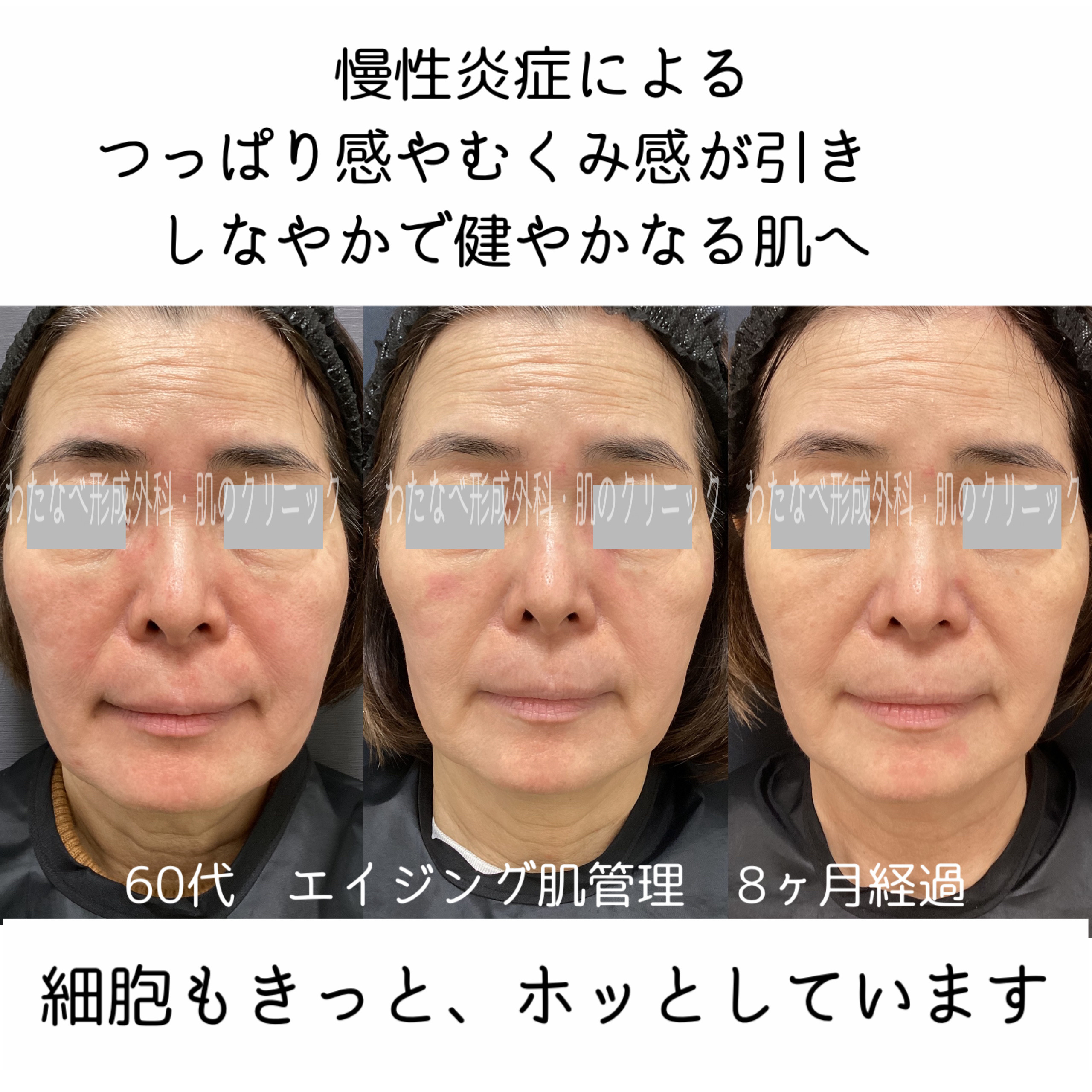 - 老化による肌の潤い・艶・ハリ・弾力の低下、小じわ、毛穴の開き